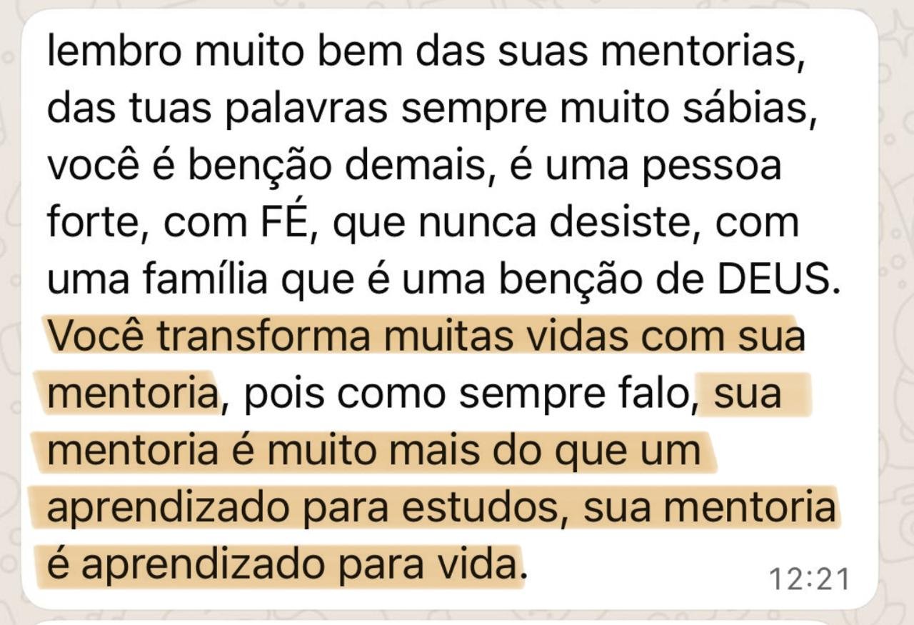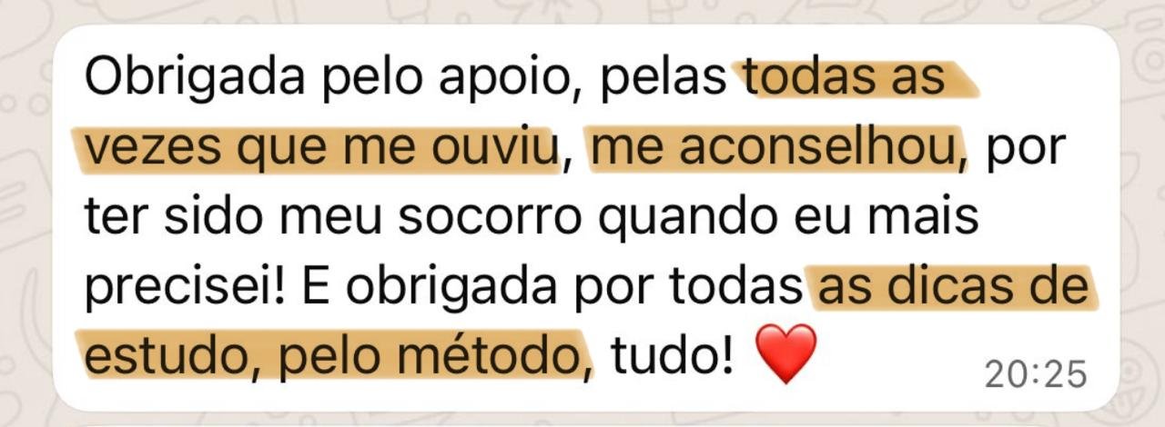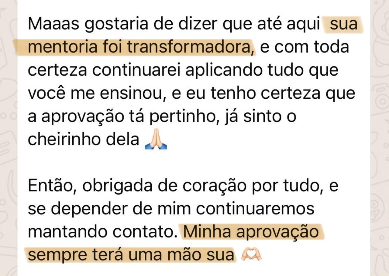Com base na sua experiência de anos, ao lado da Jéssica, desenvolveu o Método CAC — um passo a passo que ensina os seus mentorados a mapearem a banca e a memorizarem o conteúdo com repetição estratégica, transformando esforço em disciplina e disciplina em aprovação.